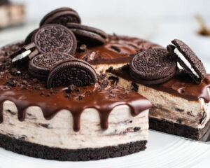 Cream cheese, Oreos, brown sugar, eggs, heavy cream, cookie crust.
